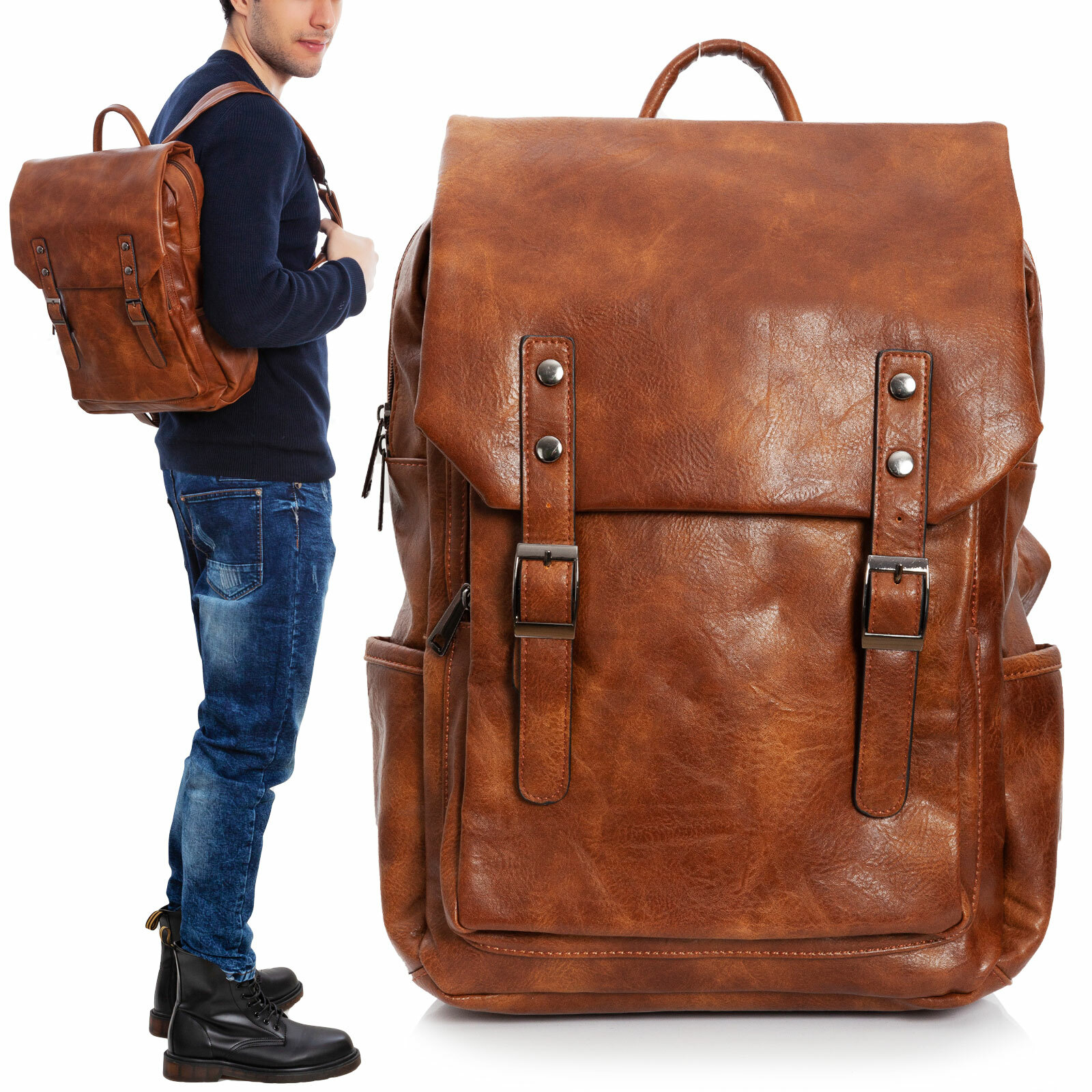 Mochila Hombre Piel Sintetico Ordenador Personal Vintage Acolchado Toocool Ebay