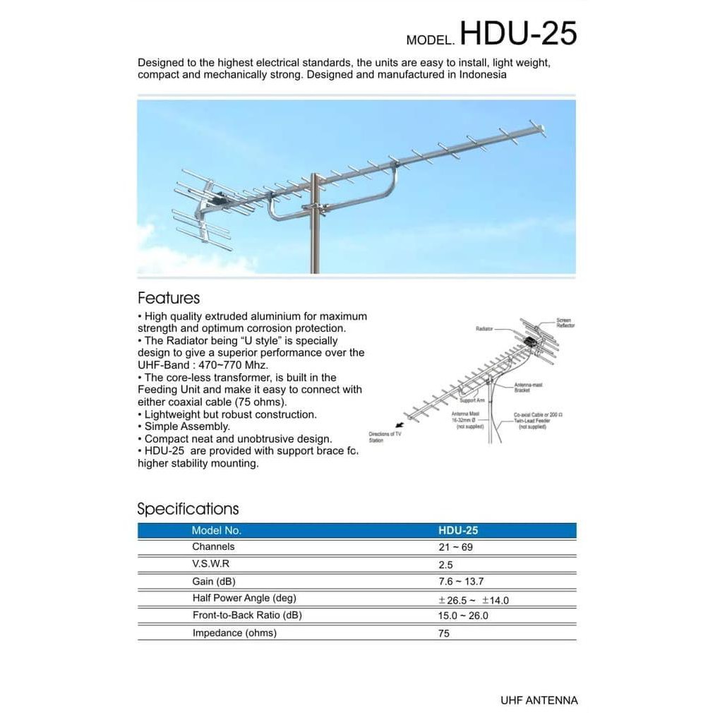 Jual ANTENA TV TERBAIK PF HDU-25 sangat peka Very High Gain Cocok untuk TV  Analog dan TV Digital di Lapak TANDA shop | Bukalapak